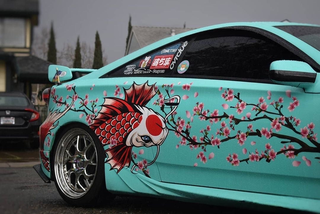 This is our brand new 2020 livery, the Koi Fish Sakura Livery. It includes full color printed decals for both sides of the car. This Decal set is guaranteed to last up to 3 years without cracking or fading.