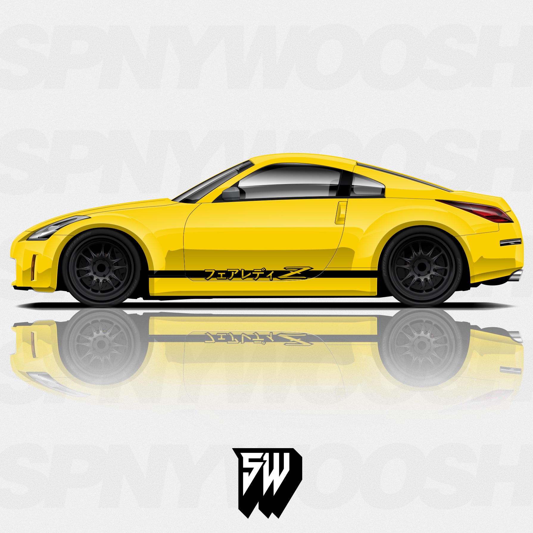 Elevate the style of your Nissan 350Z or 370Z with our vinyl side stripes featuring the iconic Japanese Fairlady Z logo. These stripes offer a classic yet distinctive look, paying homage to the legendary heritage of the Fairlady Z series. Crafted from high-quality, weather-resistant vinyl, they provide a seamless application and long-lasting durability, ensuring your Z retains its stylish edge through all driving conditions.