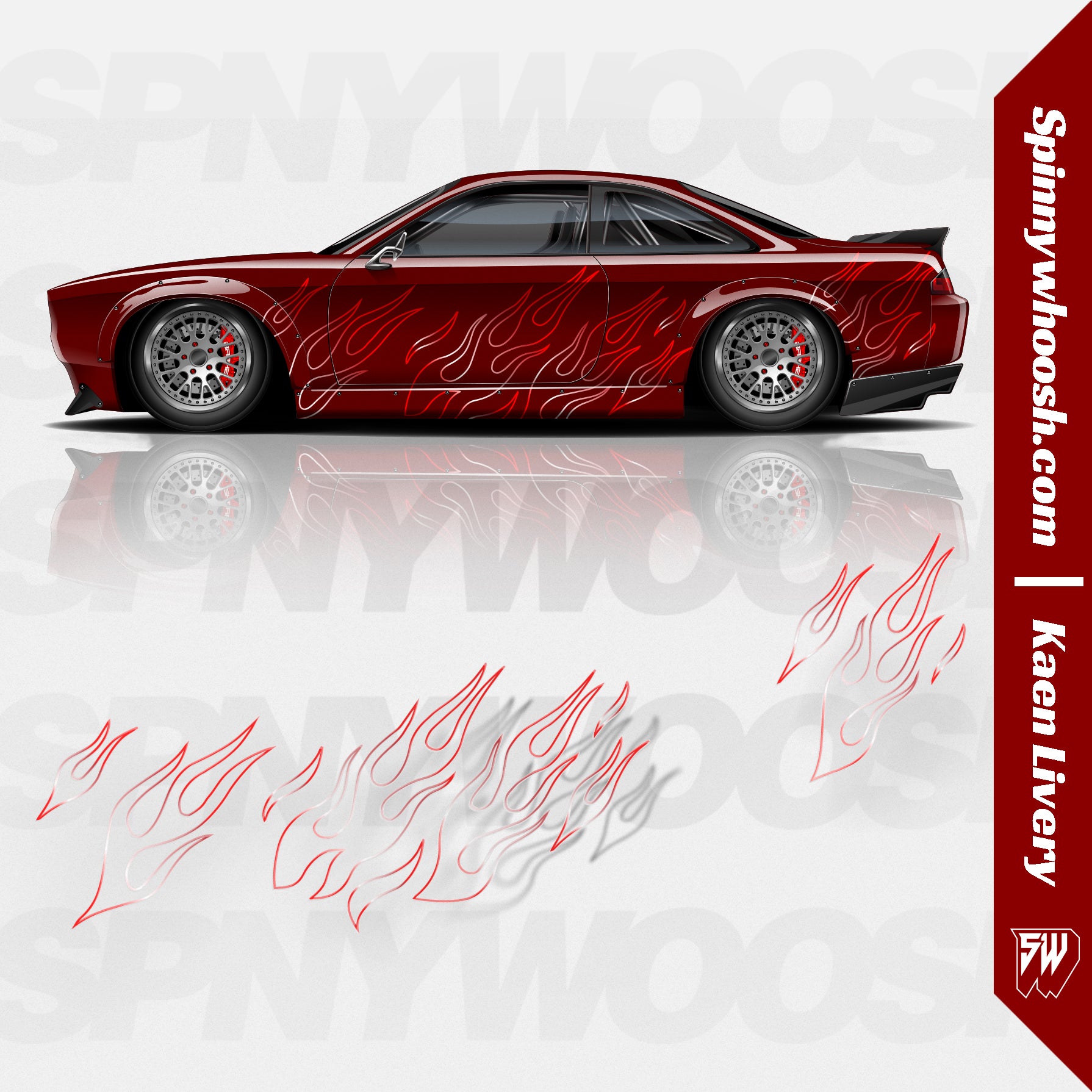 This is part of our brand new 2023 Drift Livery lineup. This is a fully customizable Kaen 火炎 livery (Flame livery in English) that is completely printed/cut to order. It includes full color printed decals for both sides of the car. We have also included a few add-on items as well! This drift livery set is guaranteed to last up to 3 years without cracking or fading.