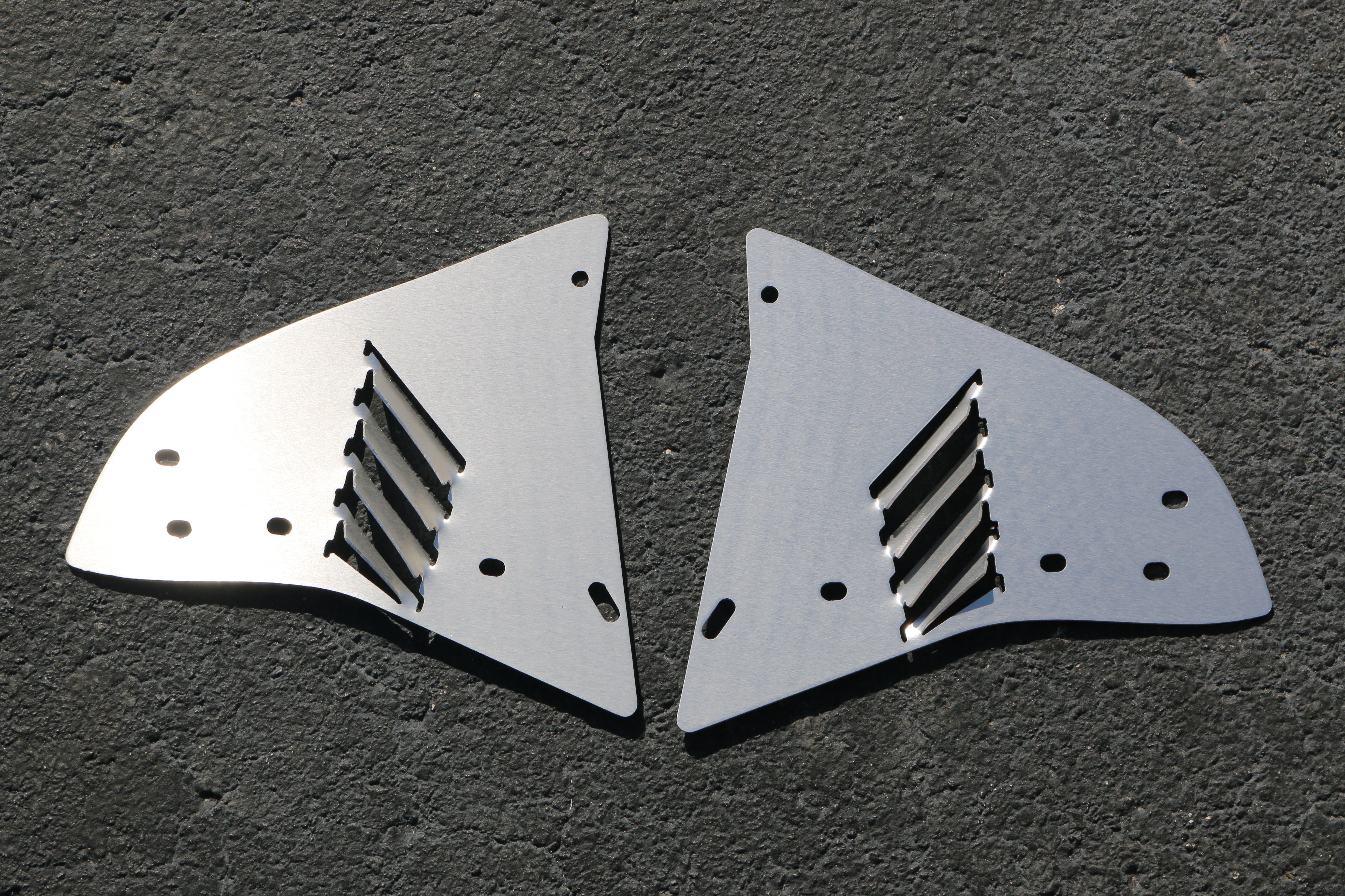 -CNC Plasma cut from 0.080″ (2 mm) aluminum, finished with an even brushed finish