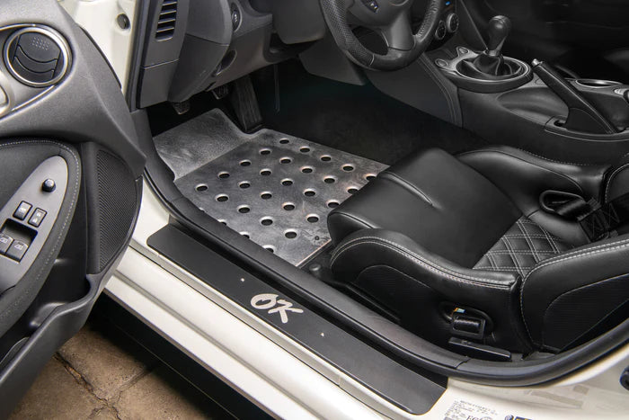 Made to snuggly fit the footwell, as well as slide over the OEM floor mat pins, our heel plates fit securely without the need for drilling.