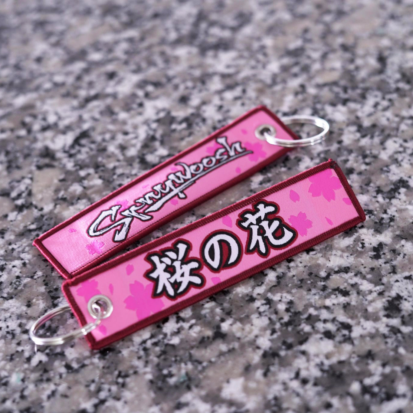 This will be the 3rd iteration of this design and our V5 Cherry Blossom Jet Tag! In this design we used simplified sakura flowers in two shades of pink and added in our favorite color, burgundy for a truly unique look! 桜の花 reads "Cherry Blossom" in Japanese.