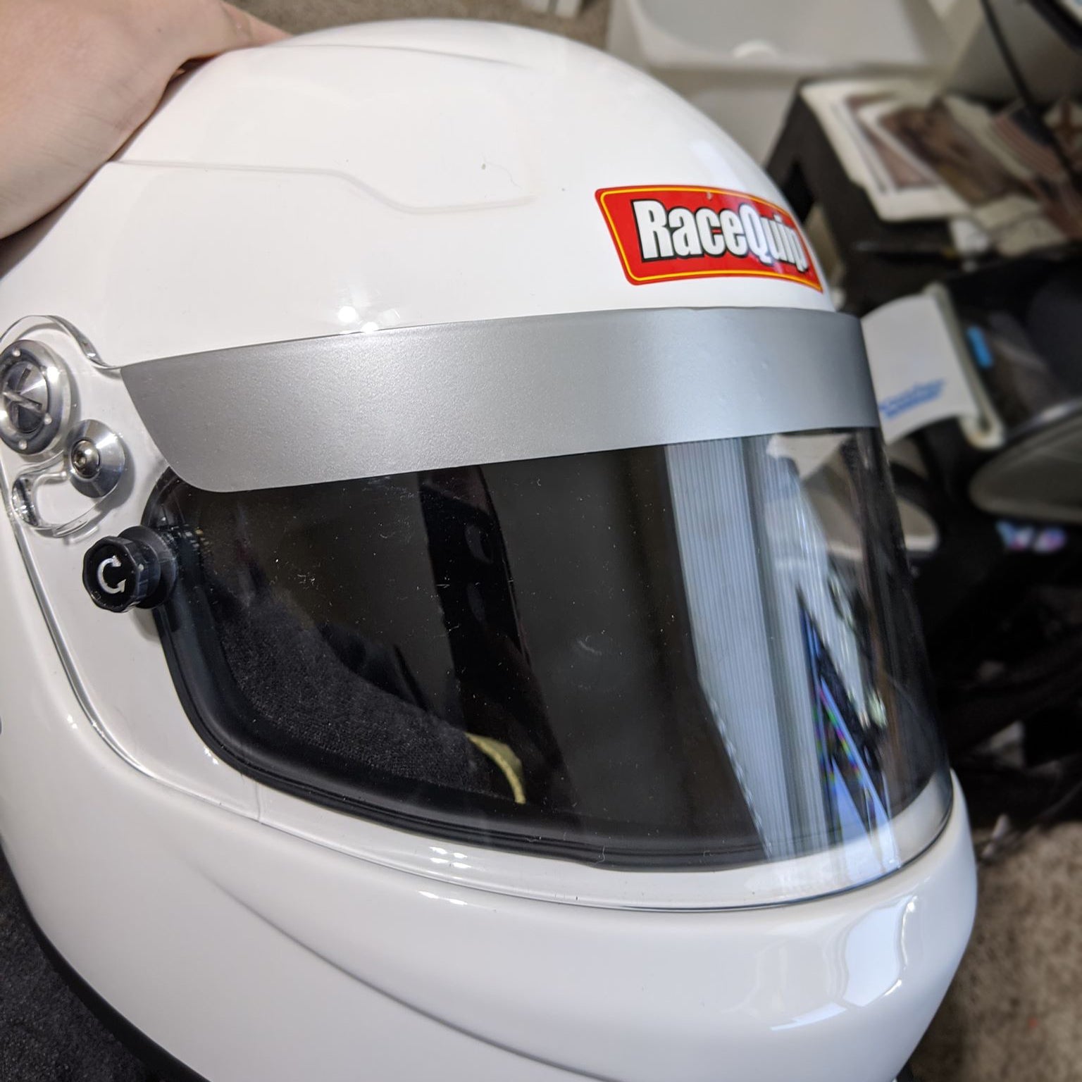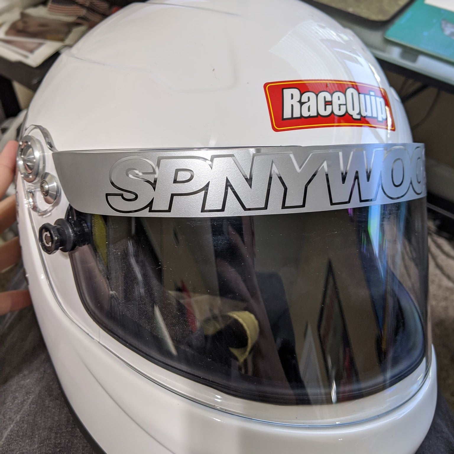Replacement visor strips for Racing helmets help to reduce glare. Available as a solid strip of vinyl, die-cut vinyl or 2-color layered vinyl. We can also do a full color version if you'd like a custom logo, number, name, etc by special request.