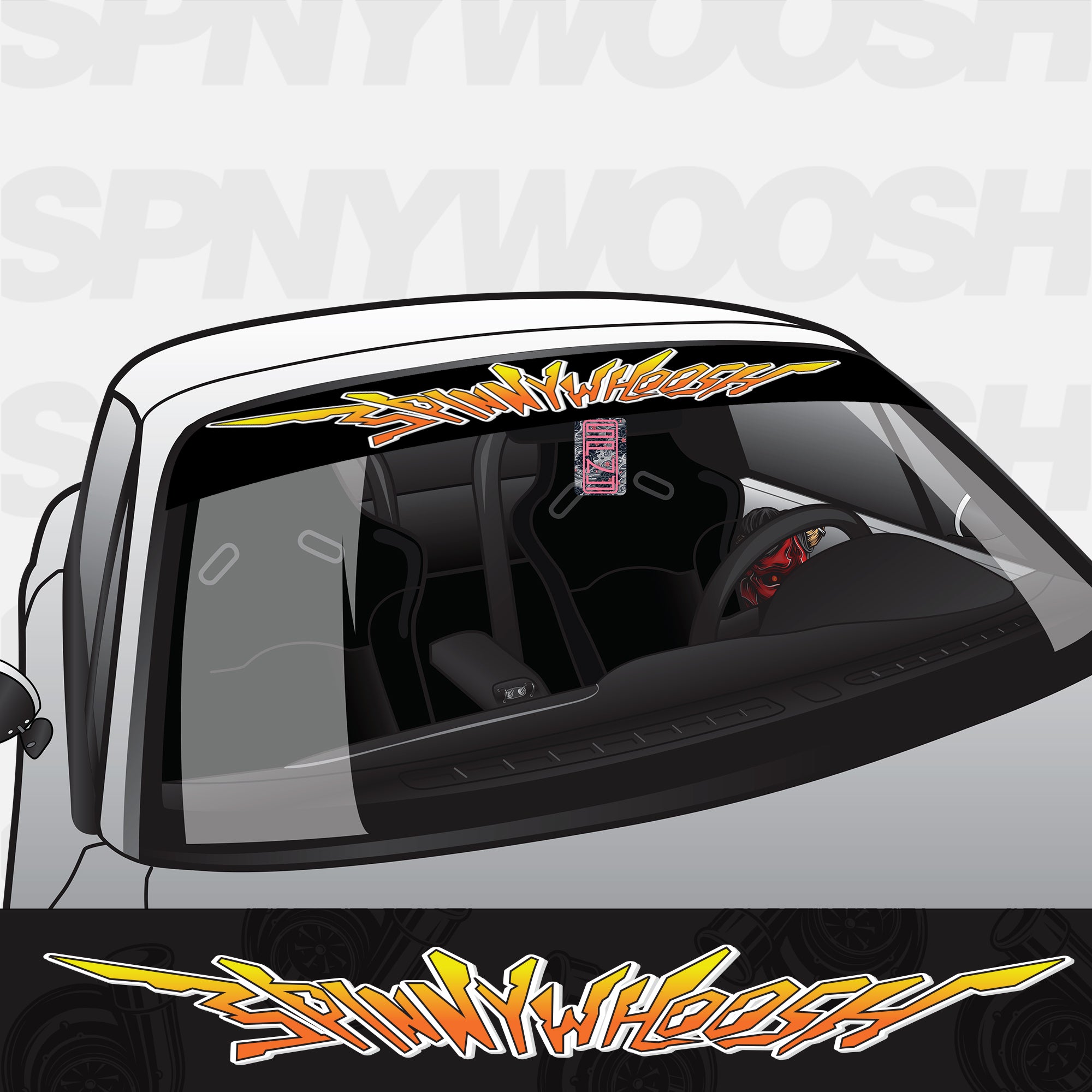This is our Eva 01 SPNYWOOSH Text Banner. This unique banner is full color printed vinyl with our highly detailed graphics inspired by retro 90s Anime. We recommend applying this over a Matte Black backing banner for that perfect gloss/matte contrast!