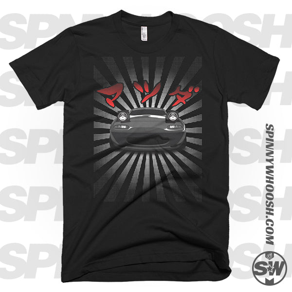 Another Spinnywhoosh 2018 Original. The design celebrates the rebirth of the modern day roadster. Comes in your choice of size and color. We've spent countless hours making this new Miata tee PERFECT! The マツダ text at top translates to "Mazda", pretty simple right? You may not be able to tell from the picture but the Japanese rising sun rays in the background, as well as the gradient in the text, has a comic halftone style effect creating a unique and interesting look. This Miata tee is made using DTG printing on only the best quality tees.